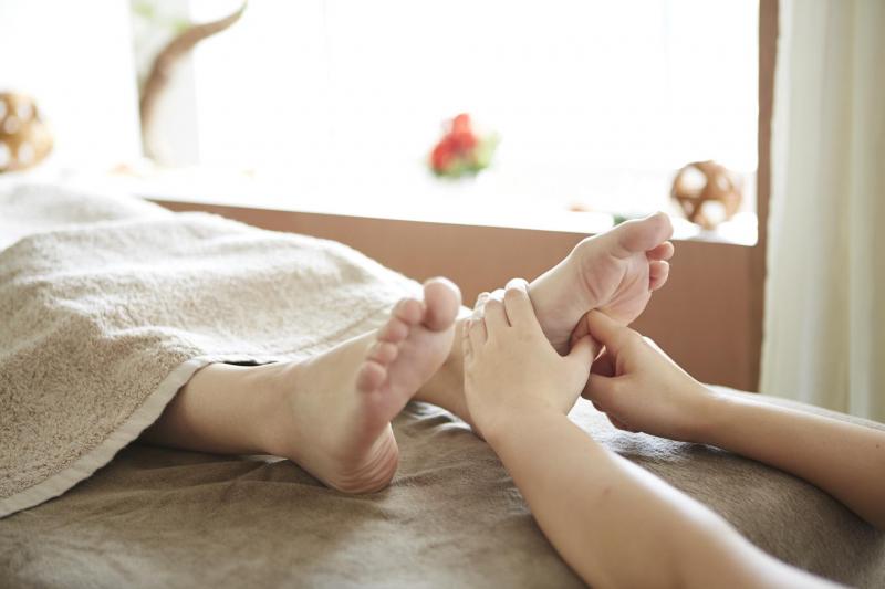 ひとつひとつツボに圧をかけながらコリや緊張を取り除きます
