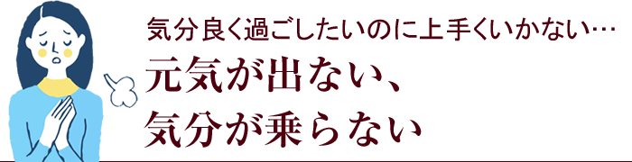 みなさんはどうしても気分が乗らないときはありませんか。身体の中に本来備わっている健康になろうとする力が高め、心と体の両方の面から、気分が乗らないときに効果的なメニューをご紹介します。